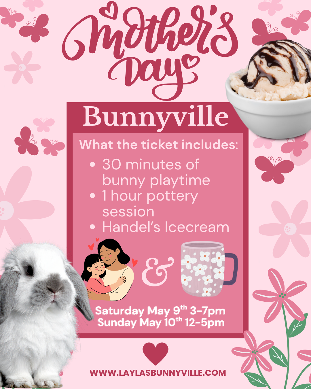 At Layla’s Bunnyville, spending time with our adorable bunnies is simple and fun!